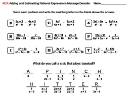 Adding And Subtracting Rational Expressions Activity Worksheets Tpt